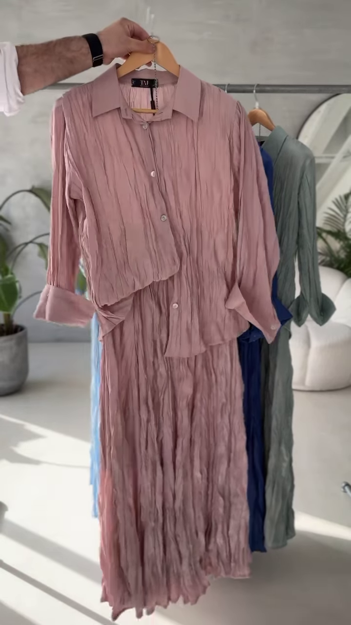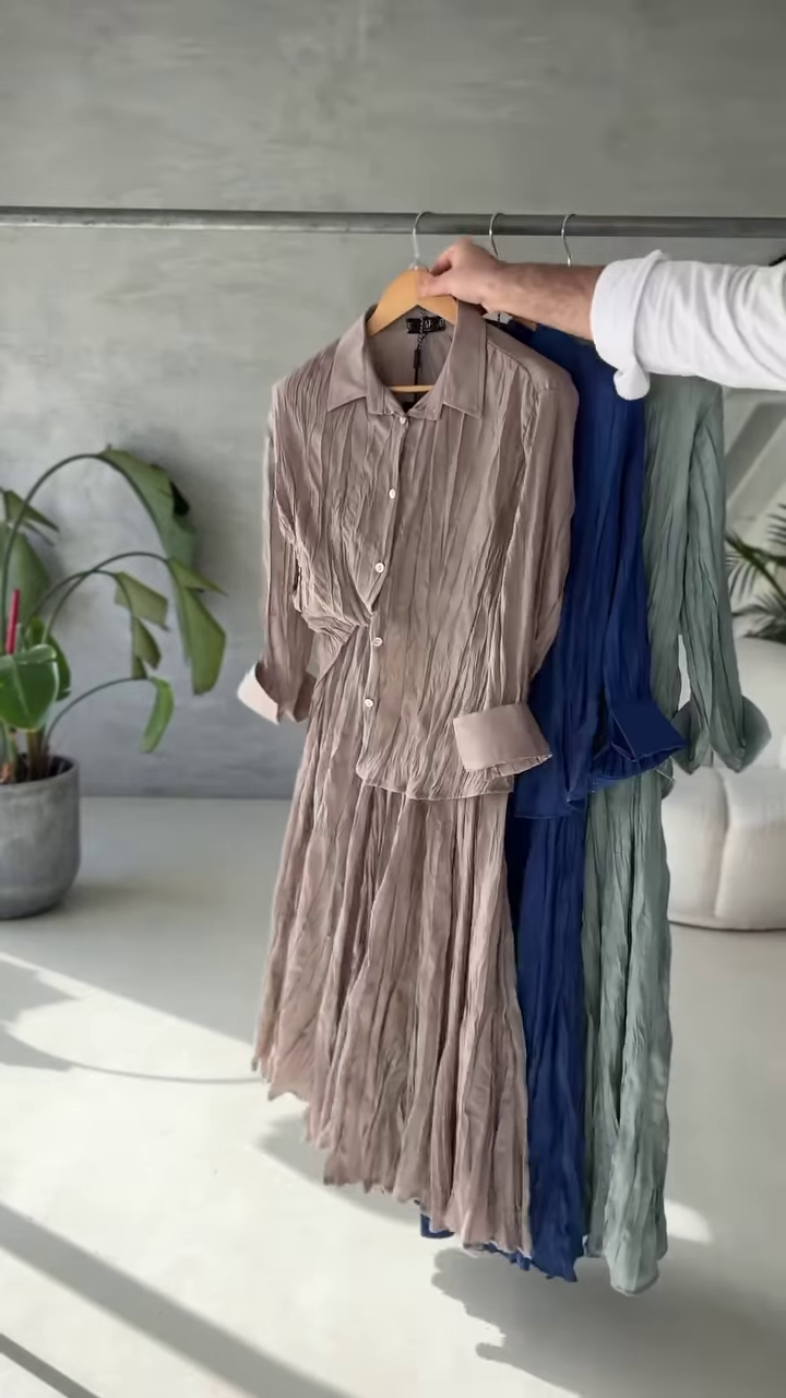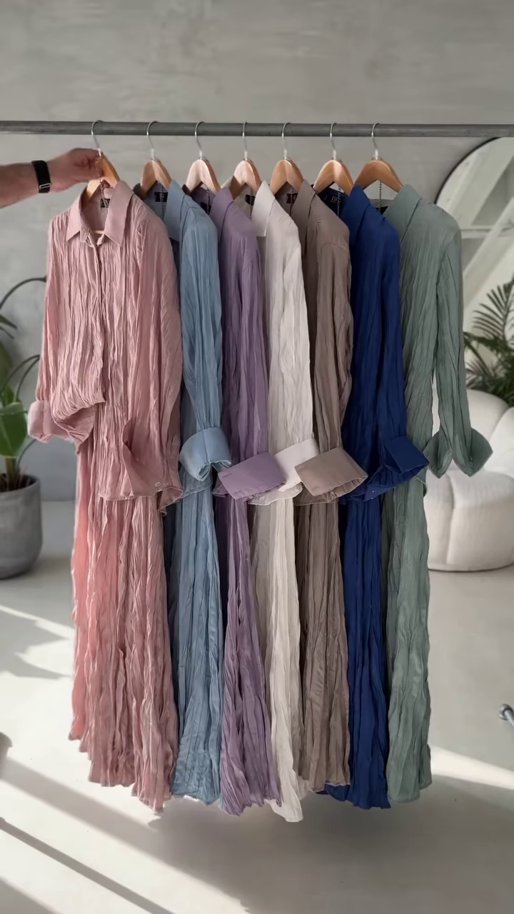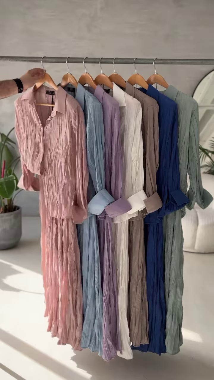 Each shade evokes a feeling — whether it’s the serenity of soft lavender or the groundedness of earthy taupe — allowing you to express yourself in color, your way. The fabric’s natural crinkle adds beautiful movement and texture, flowing effortlessly with your body and the breeze.