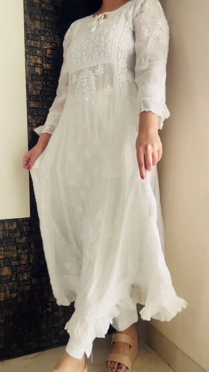 • Embroidery: Floral thread embroidery throughout (Chikankari style)